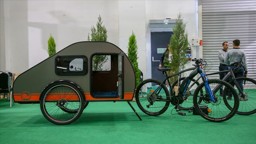 Manisa'da mimarlık yapan Fevzi Aras, Kovid-19 salgını sonrası talebin hızla arttığı karavan sektörüne yeni bir soluk getirerek elektrik destekli bisiklete uyumlu karavan tasarladı.