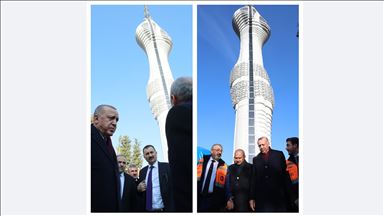 "Bugün de Sayın Cumhurbaşkanımız Recep Tayyip Erdoğan’ın teşrifleriyle halkımızın yararlanabileceği seyir terası, restoran, kafe, dinlenme salonları gibi alanlarıyla bir bütün olarak hizmete açacağız. Yapımına 2017 yılında başladığımız Çamlıca Kulesi, toplam 30 bin 150 metrekare bir alana sahip. Deniz seviyesinden 587 metre yüksekliği ile İstanbul'un ve hatta Avrupa'nın en yüksek yapısıdır. Betonarme yapısının yüksekliği 221 metre olan kulenin çelik anten yüksekliği 168 metredir.