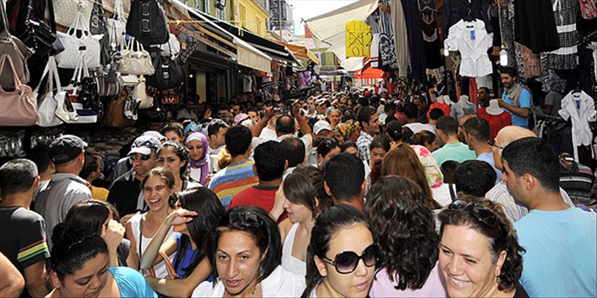 İzmir'de tarihi Kemeraltı Çarşısı'nda da giyim ve ayakkabı mağazalarının bulunduğu bölgelerde kalabalık dikkati çekerken, mağazaların bayram öncesi çeşitli kampanyalarla tüketiciyi çekmeye gayret ettiği gözleniyor.