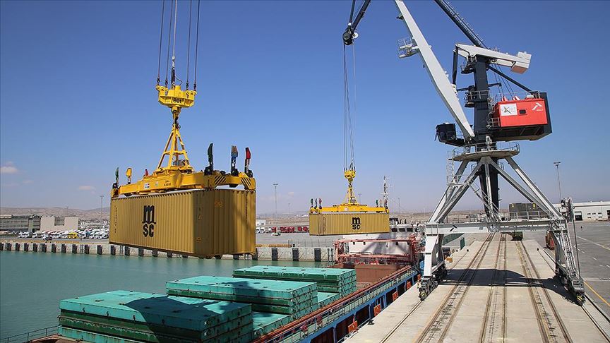 Türkiye'den Azerbaycan, Kazakistan, Türkmenistan ve Özbekistan'a giden ihraç ürünlerinin yüklü olduğu 940 metrelik trendeki 82 konteyner Bakü'nün Alat Limanı'ndan Hazar Denizi'ne açıldı.