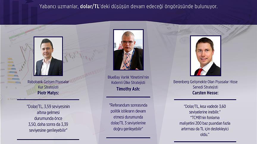 Yabancı uzmanlar, dolar/TL'deki düşüşün devam edeceği öngörüsünde bulunuyor.