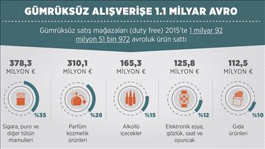 Duty Free olarak bilinen gümrüksüz satış mağazalarında geçen yıl yaklaşık 1 milyar avroluk satış yapıldı.