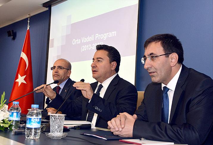 Başbakan Yardımcısı Ali Babacan, Kalkınma Bakanı Cevdet Yılmaz ve Maliye Bakanı Mehmet Şimşek'le birlikte Başbakanlık Merkez Bina'da düzenlediği basın toplantısında, 2013-2015 yıllarını kapsayan Orta Vadeli Program'ı (OVP) açıkladı.