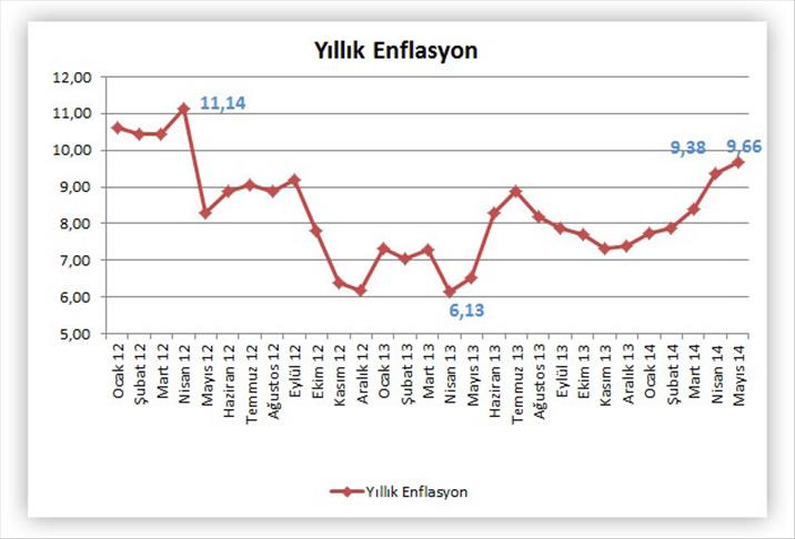 Mayısta fiyatı, en çok artış gösteren diğer ürünler arasında yüzde 20 ile şans oyunları masrafları (at yarışı), yüzde 17,43 ile limon, yüzde 14,37 ile çilek, yüzde 11,53 ile elma, yüzde 10,56 ile antep fıstığı, yüzde 10,44 ile gazeteler ve yüzde 8,16 ile şehirlerarası tren ücreti yer aldı. Mayısta fiyatı en az artan ürün ise yüzde 1,29 ile ekmek oldu.