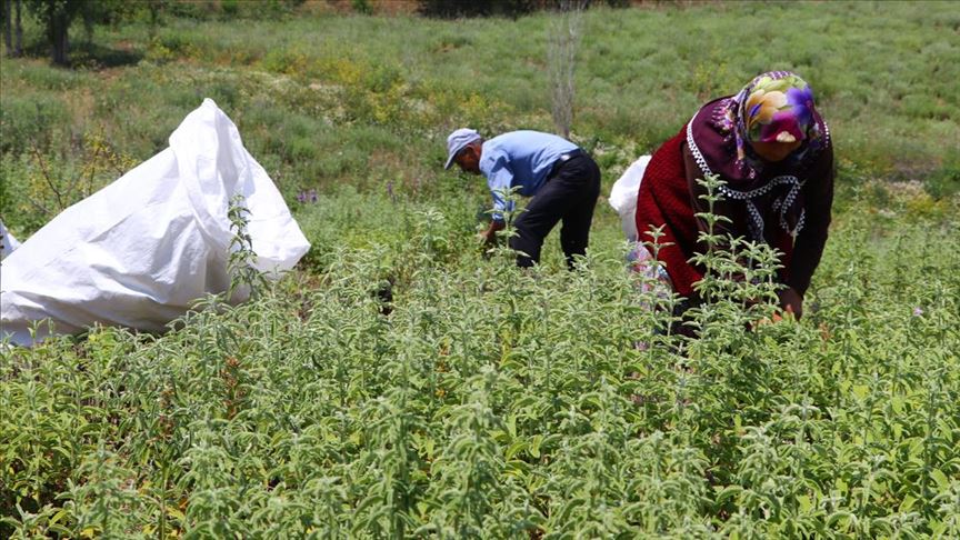 Tekirdağ'ın Şarköy ilçesindeki Ganos Dağı'nın yüksek kesimlerinde yetiştirilen ve 7 ülkeye gönderilen ada çayı hasat ediliyor.