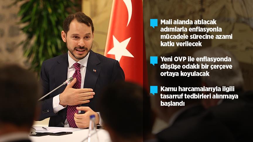 Hazine ve Maliye Bakanı Berat Albayrak, mali alanda atılacak adımlarla enflasyonla mücadele sürecine azami katkı verileceğini belirterek, açıklanacak yeni Orta Vadeli Program (OVP) ile enflasyonda düşüşe odaklı bir çerçeve ortaya koyulacağını vurguladı.