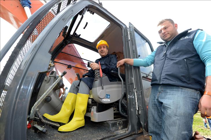 Eker, daha sonra baret takıp yağmurluk ve çizme giyerek, alanda bulunan iş makinesine bindi. Eker, iş makinesinin operatörünün yardımıyla atıl durumdaki binalardan ilkinin yıkımında iş makinesiyle ilk darbeyi vurdu.