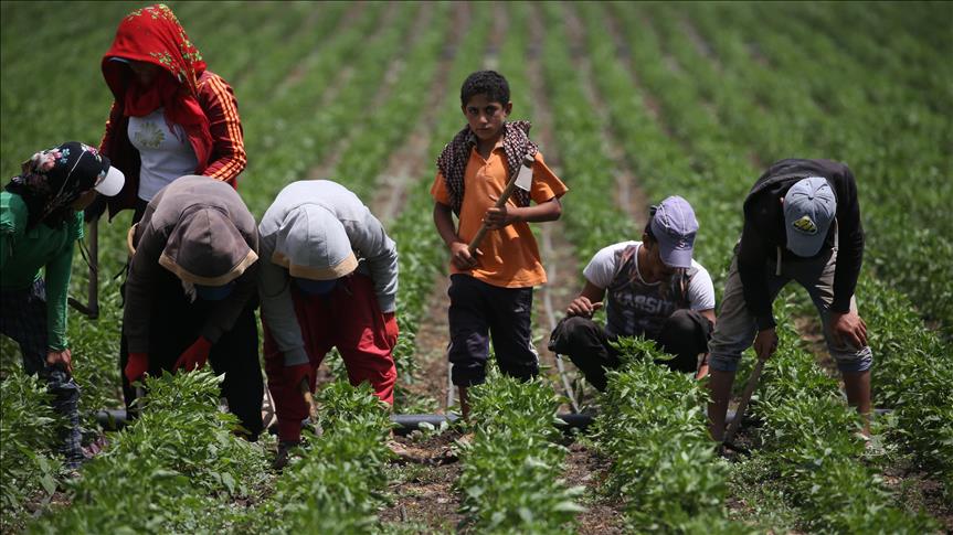 Aralarında Suriyeli sığınmacıların da bulunduğu birçok kişinin tarım işçisi olarak çalıştığı ilçede, gelecek ay başlanacak hasat öncesinde ürünün çapalanmasına devam ediliyor.