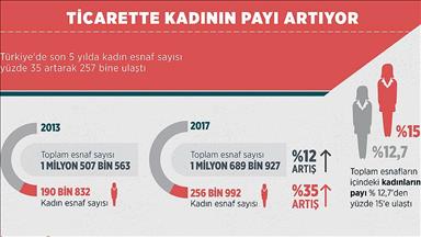 Türkiye Esnaf ve Sanatkarları Konfederasyonu (TESK) Genel Başkanı Bendevi Palandöken, 2013'te 185 bin 430 olan kadın esnaf ve sanatkar sayısının Haziran 2018 sonu itibarıyla 277 bin 955'e yükseldiğini belirtti.