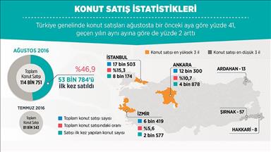 Yılın üçüncü döneminde, konut satışında geçen yılın aynı dönemine göre ise yüzde 1,76 oranında artış gerçekleşti.
