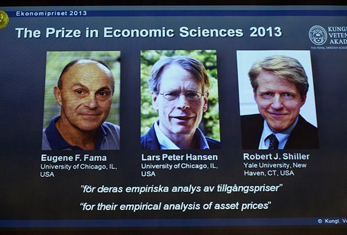 Dünyanın en prestijli bilim ödüllerinden olan Alfred Nobel Anısına Sveriges Riksbank Ekonomi Bilimleri Ödülü'nün bu yılki sahipleri Eugene Fama, Lars Peter Hansen ve Robert Shiller oldu. İsveç Kraliyet Bilimler Akademisi, 3 ABD'li ekonomistin "varlık fiyatları konusundaki deneysel analizleri" için ödüle layık bulunduğunu açıkladı.