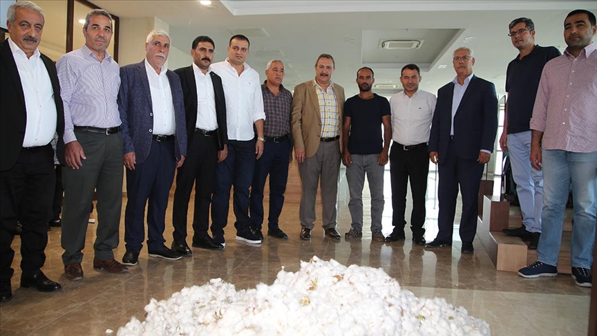 Şanlıurfa Ticaret Borsasında düzenlenen törende, Haliliye ilçesine bağlı Büyükmerdesi Mahallesi'nde çiftçi Ahmet Demirel’in yetiştirdiği pamuk, açık artırma usulüyle satışı sunuldu.