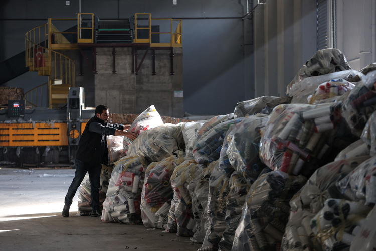 "Bu işin alt yapısıyla ilgili ekip, ekipman, araç gereç ne gerekiyorsa bunları aldık. İçinde bulunduğumuz alan toplam 11 bin metrekare, bunun 3 bin metrekaresi kapalı alan. Bursa'mızda, belki de Türkiye'de bu ölçekte çok örnek bir tesis. Burada ortaklarımıza bu hizmeti veriyoruz. Ekonomik değerlerine göre ambalaj atıklarını satın alıyoruz."
