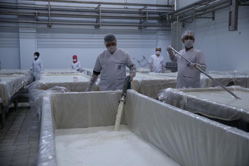 İşletmedeki 35 bin koyunun tam otomatik makinelerde sağılmasının ardından havayla temas etmeden araçlarla Organize Sanayi Bölgesi'ndeki fabrikaya ulaşan sütler, buradaki laboratuvarlarda incelendikten sonra gerekli işlemlerden geçirilerek, gıda mühendislerinin denetiminde kaliteli ürünlere dönüşüyor.
