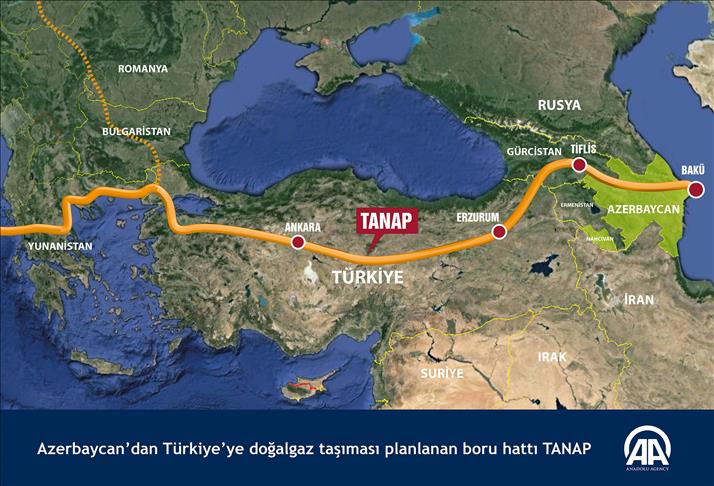 Azeri gazını Türkiye üzerinden Avrupa'ya taşımayı amaçlayan Trans Anadolu Doğalgaz Boru Hattı Projesi'ne (TANAP) yönelik uluslararası anlaşmalar yürürlüğe girdi.