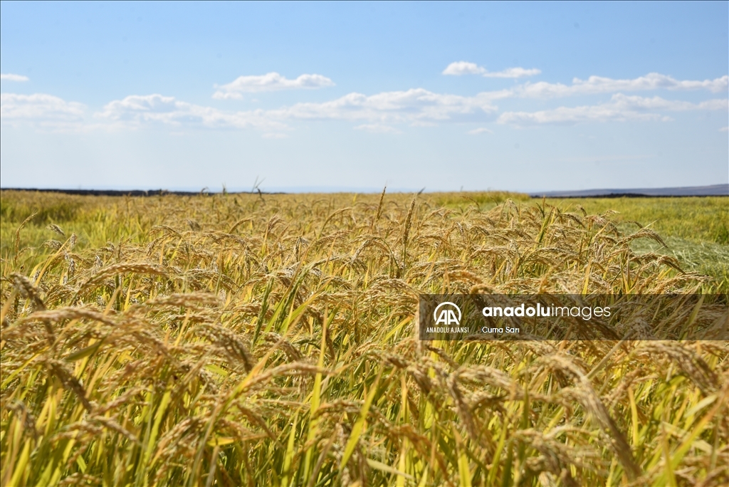 Şanlıurfa'nın Siverek ilçesinde tescilli Karacadağ pirincinde yüksek verim üreticisini sevindiriyor.