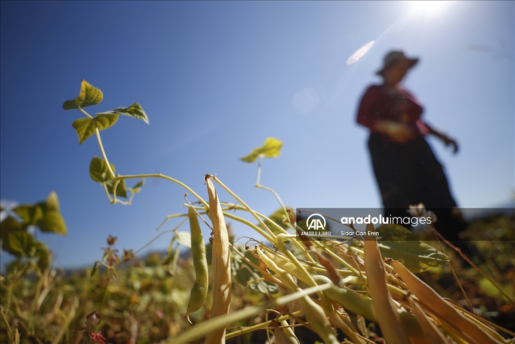 Kuru fasulye üretirken herhangi bir ilaç ya da gübre kullanmayan üreticiler, şu sıralar hasada hazır hale gelen fasulyeleri biçmek için yoğun çaba harcıyor.