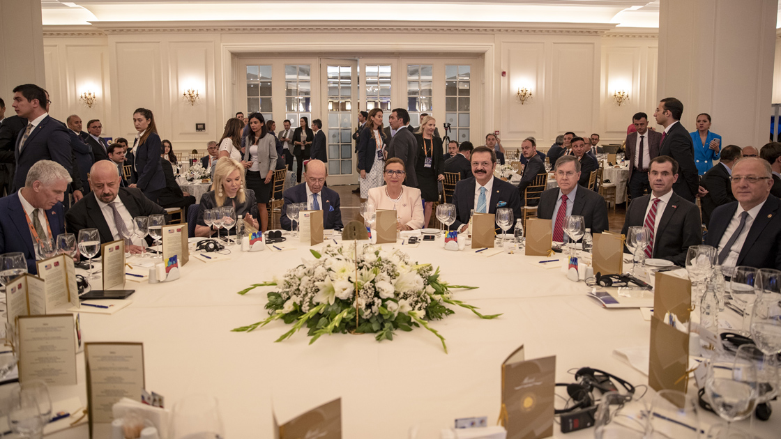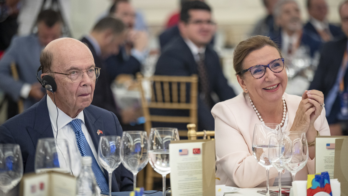 Ticaret Bakanı Ruhsar Pekcan, ABD Ticaret Bakanı Wilbur Ross'un katılımıyla Türkiye Odalar ve Borsalar Birliğinde (TOBB) düzenlenen çalışma yemeğine katıldı.