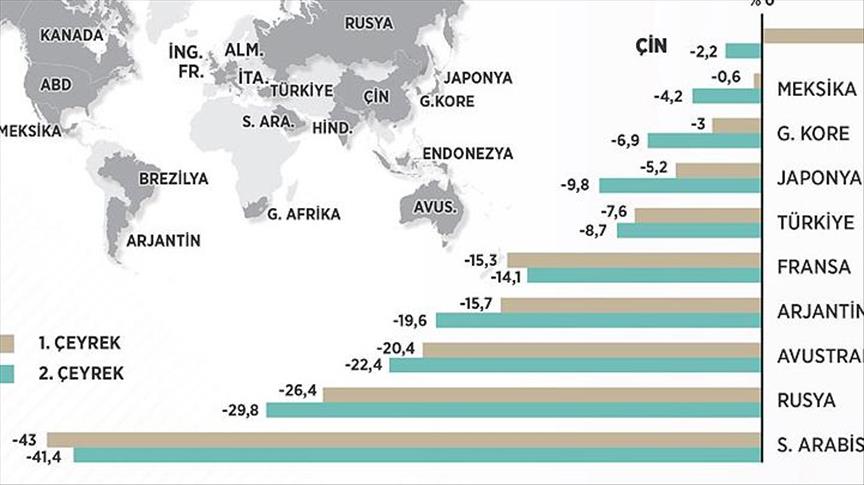 Süregelen global ekonomik durgunluktan ihracatı en fazla olumsuz etkilenen ülkeler sıralamasında ise net petrol ve emtia ihracatçısı G20 üyeleri başı çekiyor.