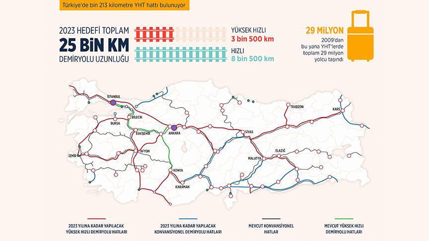 Türkiye, 2009'da tanıştığı yüksek hızlı tren (YHT) teknolojisiyle ulaşımda yeni bir döneme girerken, 2023 yılına kadar ülke nüfusunun yarısına yakınının yaşadığı 18 ilin yüksek hızlı demiryolu ağıyla birbirine bağlanması hedefleniyor.