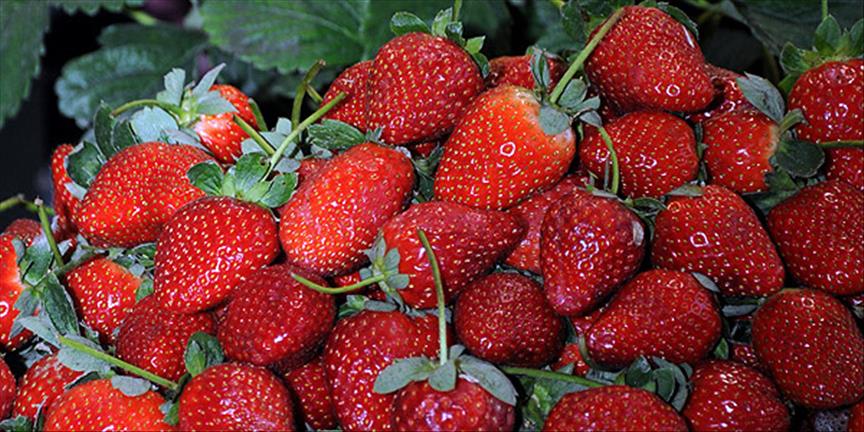 Yaz meyvesi olarak bilinen çilek, Alanya'da 10 liradan manav ve pazar tezgahlarındaki yerini almaya başladı.***