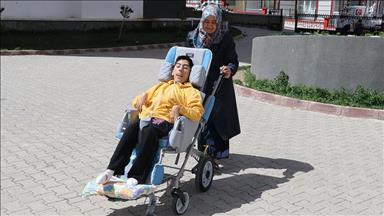 Yozgat'ta 40 yaşındaki Tekmile İbiş, göz temasıyla iletişim kurabildiği, sadece "anne" diyebilen zihinsel ve bedensel engelli oğlu İbrahim'i bir an olsun yalnız bırakmıyor.11 Mayıs 2018