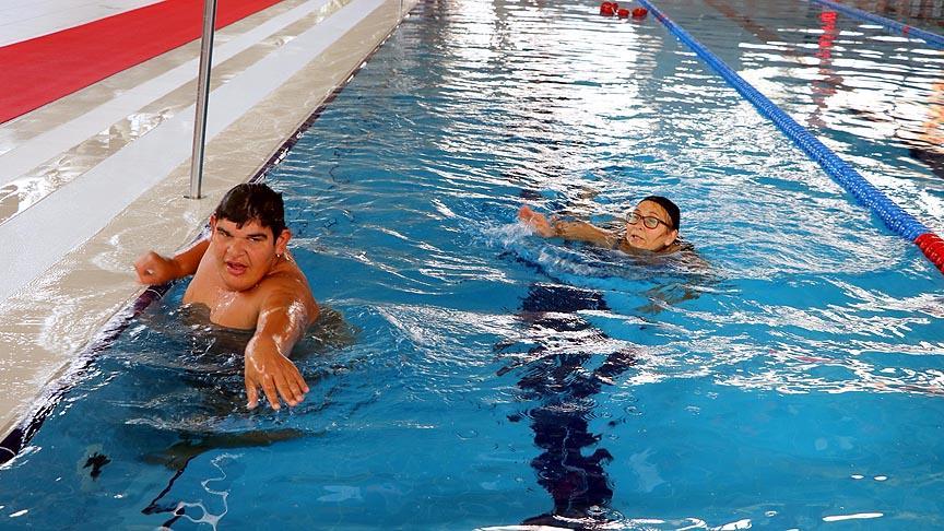 Tekirdağ'da yaşayan 56 yaşındaki Sebile Özkaya, zihinsel engelli oğlu Onur ile 7 yıldır Tekirdağ Gençlik Hizmetleri ve Spor İl Müdürlüğü bünyesindeki ücretsiz yüzme kurslarına katılıyor.