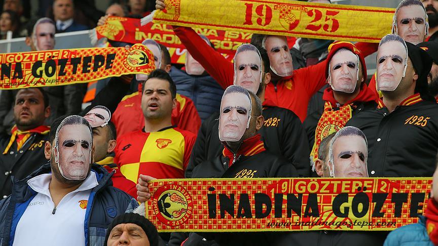 TFF 1. Lig'de Göztepe ile Denizlispor arasında oynanan müsabakada taraftarlar, İzmir'deki terör saldırısında şehit olan Fethi Sekin'in maskelerini taktı.