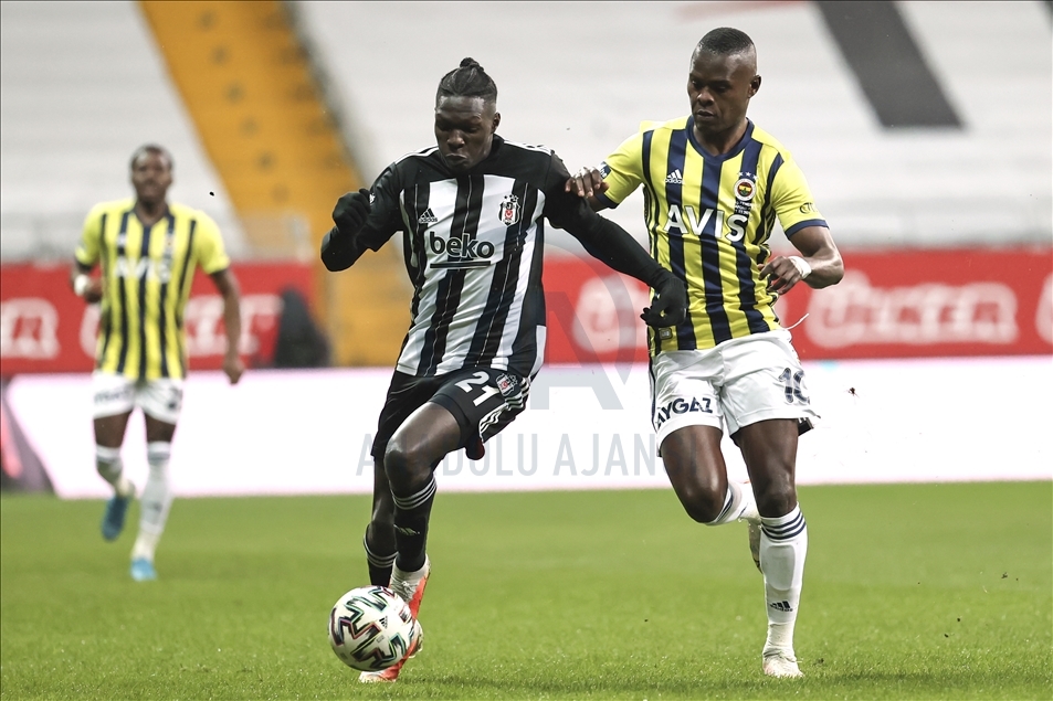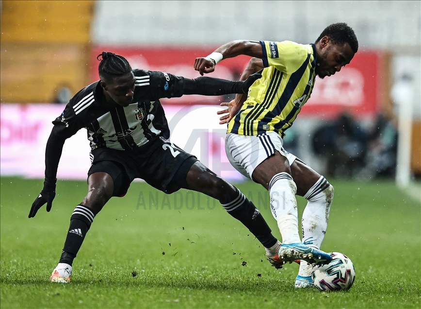 Beşiktaş, Süper Lig’in 31. hafta maçında Fenerbahçe ile Vodafone Stadyumu'nda karşılaştı. Fenerbahçe futbolcusu Mbwana Samatta (10) ile Beşiktaş oyuncusu Cyle Christopher Larin (17) bir pozisyonda mücadele etti. ( Serhat Çağdaş - Anadolu Ajansı )