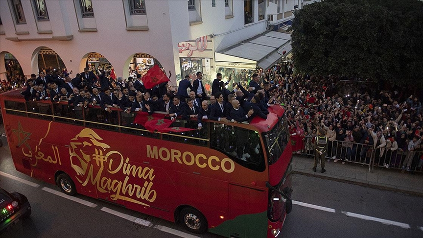 Başkent Rabat'ta milli forma giyerek Fas bayrağını taşıyan binlerce vatandaş, 5. Muhammed Caddesi ve 2. Hasan Caddesi'nde Katar'dan dönen Fas Milli Takımı ekibine tezahüratlarla sevgi gösterisinde bulundu.