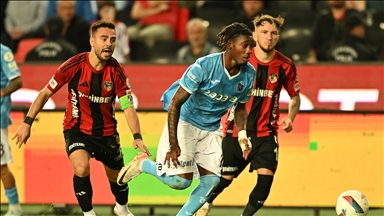 52. dakikada ceza sahası içinde topla buluşan Ömer Ali Şahiner'in vuruşunda, meşin yuvarlak kaleci Mert Günok'ta kaldı.