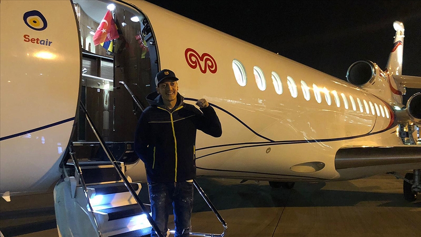 Açıklama ile birlikte paylaşılan ilk fotoğrafta, Mesut Özil, kendisini İstanbul'a getirecek özel uçağın önünde yer alırken, ikinci fotoğrafta boynunda Fenerbahçe atkısı bulunan tecrübeli futbolcu, eşi ve çocuğuyla birlikte poz verdi.