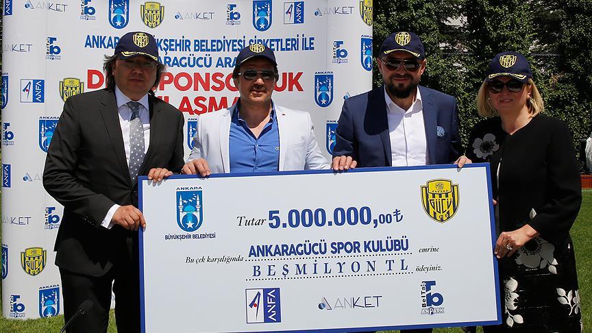 Konuşmaların ardından katılımcılar "Ankara Büyükşehir Belediyesi şirketleriyle MKE Ankaragücü arasında dev sponsorluk anlaşması yazan panonun önünde üzerinde "5 milyon lira" yazan sembolik çekle fotoğraf çektirdi.