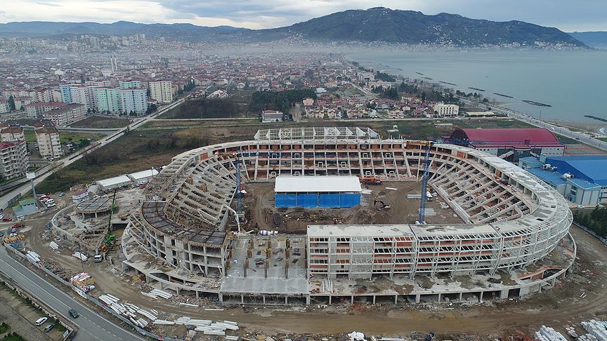 Fındık figürlü olacak şekilde inşa edilen stadın denize bakan tarafının otel olarak kullanılacağını da vurgulayan Yılmaz, "İnşallah yeni futbol sezonunda hizmete girecek olan stadın tribün ince işçiliği de bir yandan devam ediyor." şeklinde konuştu.