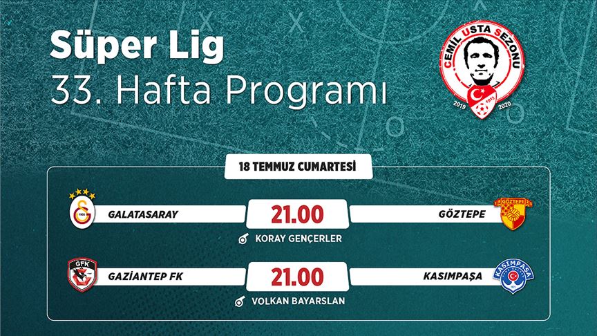 Ligde şampiyonluk ve kümede kalma mücadelesi veren takımların maçları ile Beşiktaş-Fenerbahçe derbisi ise 19 Temmuz Pazar günü saat 21.00'de oynanacak.