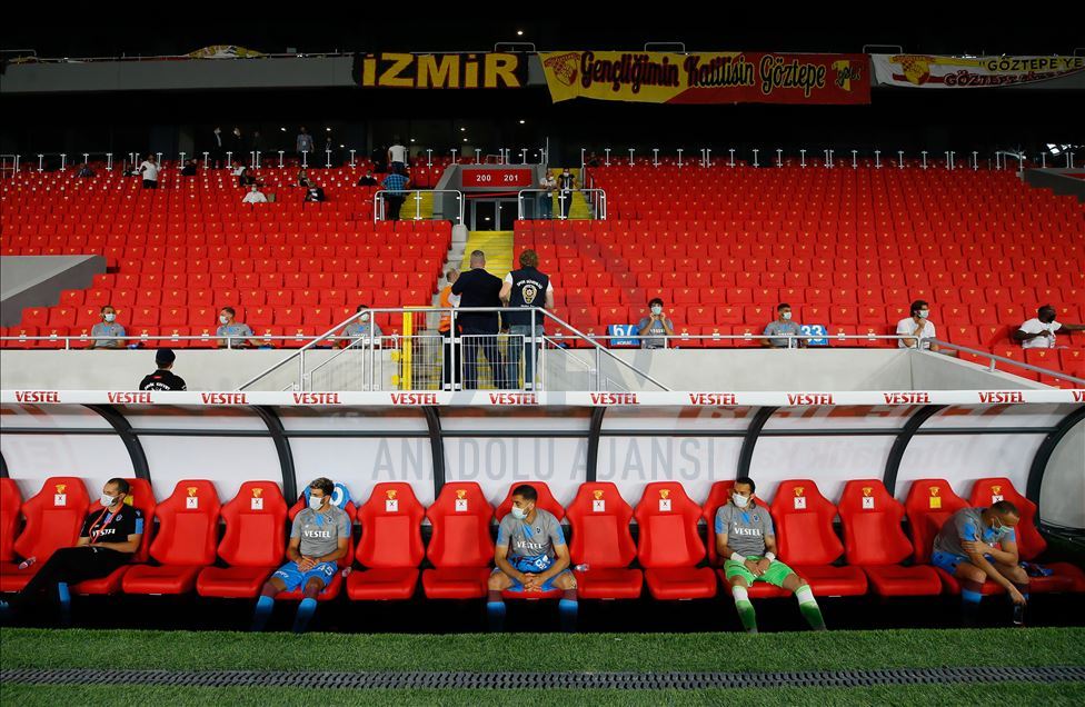 Yeni tip koronavirüs (Kovid-19) salgını tedbirleri kapsamında Göztepe-Trabzonspor maçı seyircisiz oynandı.