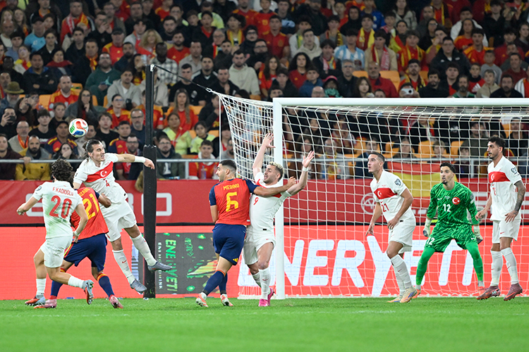 30. dakikada gelişen İspanya atağında, Pino'nun pasıyla ceza yayı önünde topla buluşan Olmo'nun dönerek sert şutunda, kaleci Altay meşin yuvarlağı kornere çeldi.