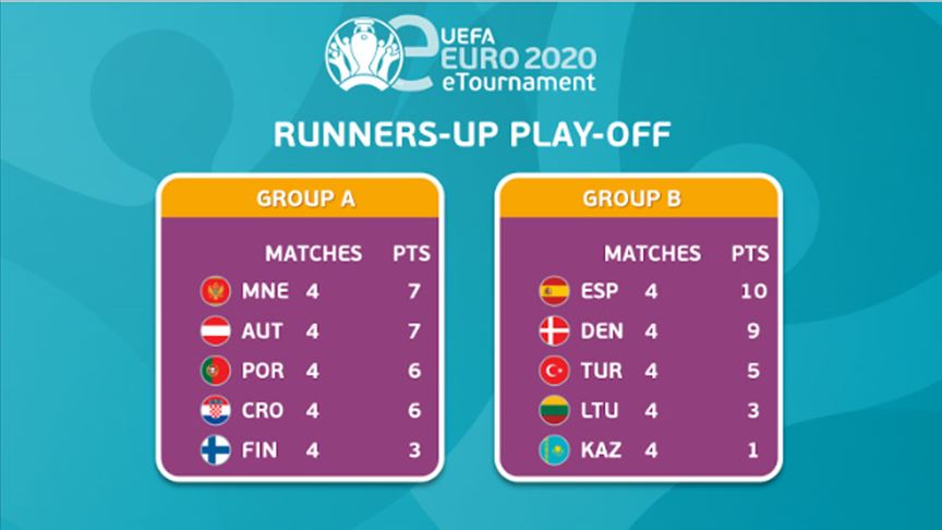 Milliler, toplam 55 ülkenin yer aldığı E-EURO 2020 grup müsabakalarının ardından play-off'ta İspanya, Danimarka, Litvanya ve Kazakistan ile karşılaştı. Ay-yıldızlılar, İspanya ve Danimarka ile E-EURO 2020'ye katılma hakkı elde etti.