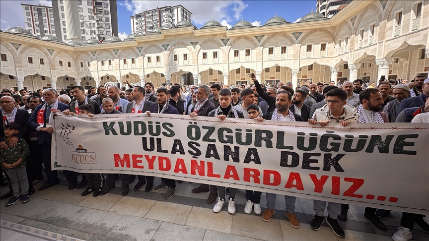 Gaziantep Kudüs Platformu ile Yeni Adım Eğitim Kültür ve Dayanışma Derneğinin çağrısıyla Şahinbey Millet Camii avlusunda toplananlar, İsrail'i kınadı.