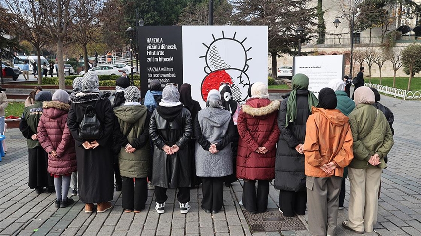 Projenin küratörü tasarımcı Gülşah Serin Sünbül, "İnsanlık nöbeti" adı altında bu projeyi başlattıklarını anlatarak, "Buradaki amaç Hanzala bir çocuk ve orada vefat edenlerin yüzde 5'i çocuk olarak tanımlanıyor. Aslında Hanzala da orada temsil edilen çocuklardan sadece bir karakter. Ama Hanzala'nın arkasını dönmesinin sebebi, Hanzala insanlığa küs, arkası o yüzden dönük. Biz de o yüzden 'Hanzala yüzünü dönecek ve Filistin'de zulüm bitecek' diyoruz." ifadelerini kullandı.
