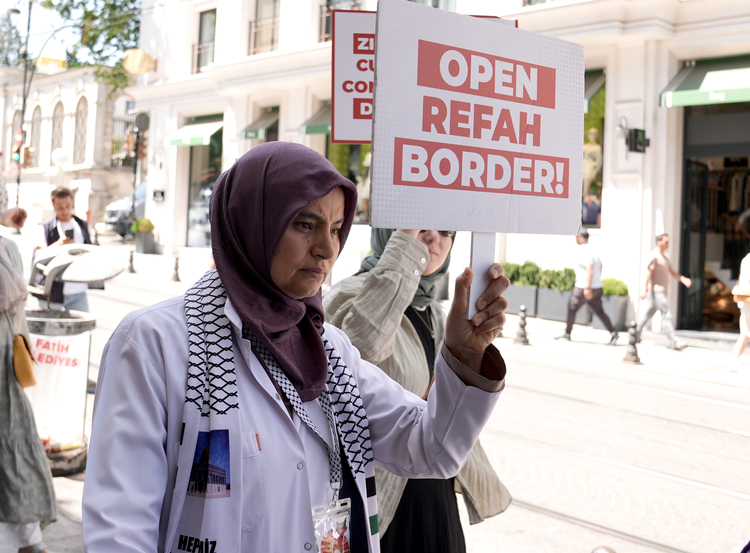 Ellerinde "Refah sınırı açılsın", "Temiz su yok, temiz gıda yok, sağlık yok", "Yıkılan hastanelerin yeniden inşasını istiyoruz" ve "Nehirden denize kadar Filistin özgür olacak" yazılı Türkçe ve İngilizce dövizler taşıyan katılımcılar, Sultanahmet'teki Alman Çeşmesi'ne kadar yürüdü.