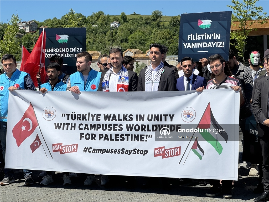 Mühendislik Fakültesi önünde bir araya gelen öğrenciler, taşıdıklarını Türk ve Filistin bayrakları ile "Filistin'in başkenti Kudüs'tür", "Kampüsten direnişe bin selam", "Filistin elbet özgür olacak", "Su yok, elektrik yok, vicdan yok", "Çocuklardan ve adaletten tarafız", "Her yer Filistin, her yer Gazze" ve "Müslüman zulme boyun eğmez" yazılı dövizlerle İsrail aleyhine sloganlar atarak yürüdü.