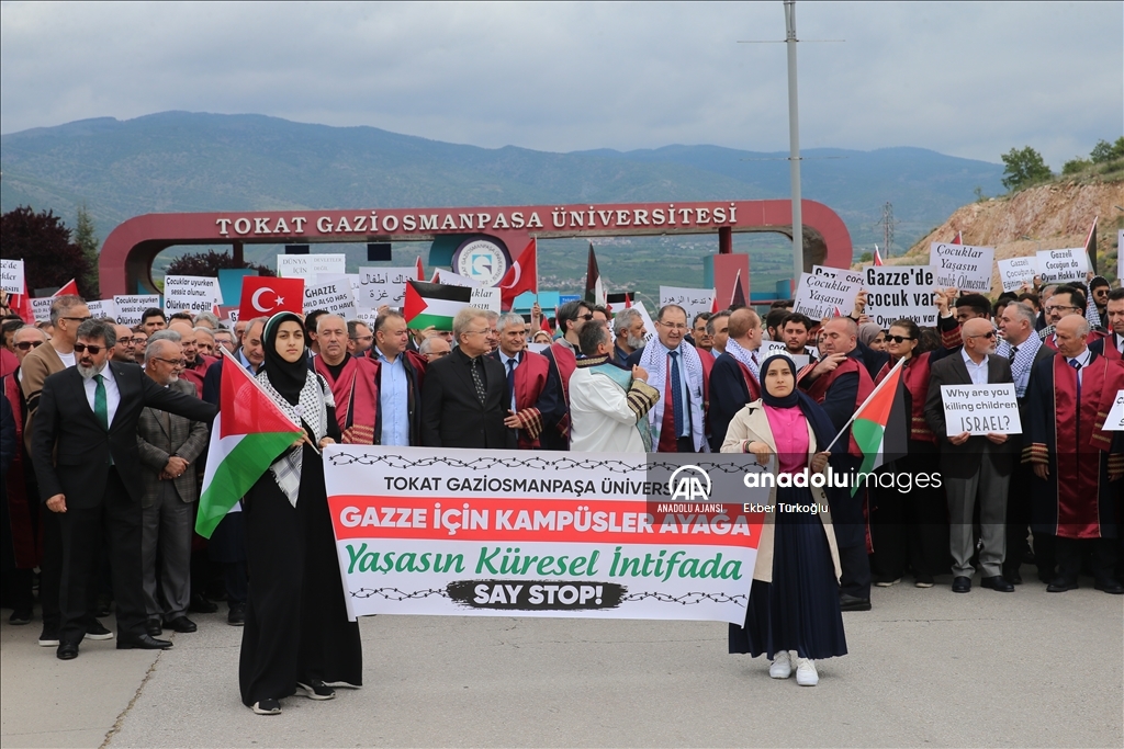 İsrail'in saldırılarını kınadıklarını belirten Rektör Yılmaz, "Biz, Tokat Gaziosmanpaşa Üniversitesi olarak, dünyanın dört bir yanındaki haksızlıklara karşı durmayı ve insan haklarına saygılı olmayı temel ilke edinmiş bir Türk yükseköğretim kurumuyuz. Son zamanlarda, İsrail'in masum Filistin halkına karşı sergilediği akıl almaz zulmün tırmanmasıyla birlikte, Amerika'daki üniversite kampüslerinde öğrencilerin barışçıl protestolarına karşı gösterilen orantısız güç kullanımını büyük bir endişeyle izlemekteyiz. Bu adaletsizlik karşısında sessiz kalmanın insanlığa karşı bir vebal olduğu inancındayız. Bu nedenle, Amerika'daki üniversitelerde yaşanan haksız uygulamalara karşı güçlü bir şekilde sesimizi yükseltiyoruz." dedi.