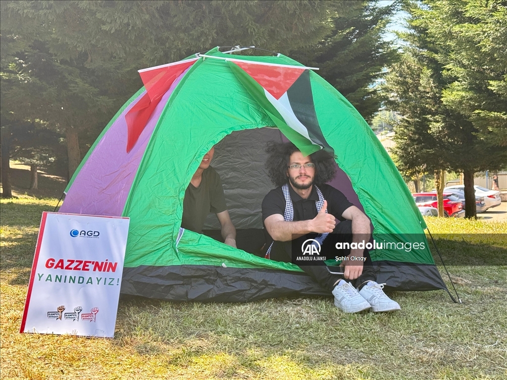 AGD Kocaeli Üniversite Komisyon Başkanı Kerem Özsoy, kampüste kurdukları 10 çadırla dünya üniversitelerine yayılan "Kampüs İntifadası"na destek verdiklerini belirterek, çadır nöbetinin cuma günü yapacakları basın açıklamasının ardından sona ereceğini dile getirdi.