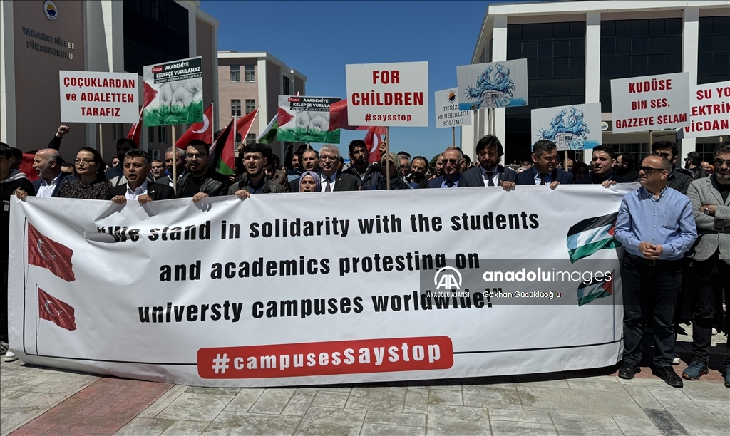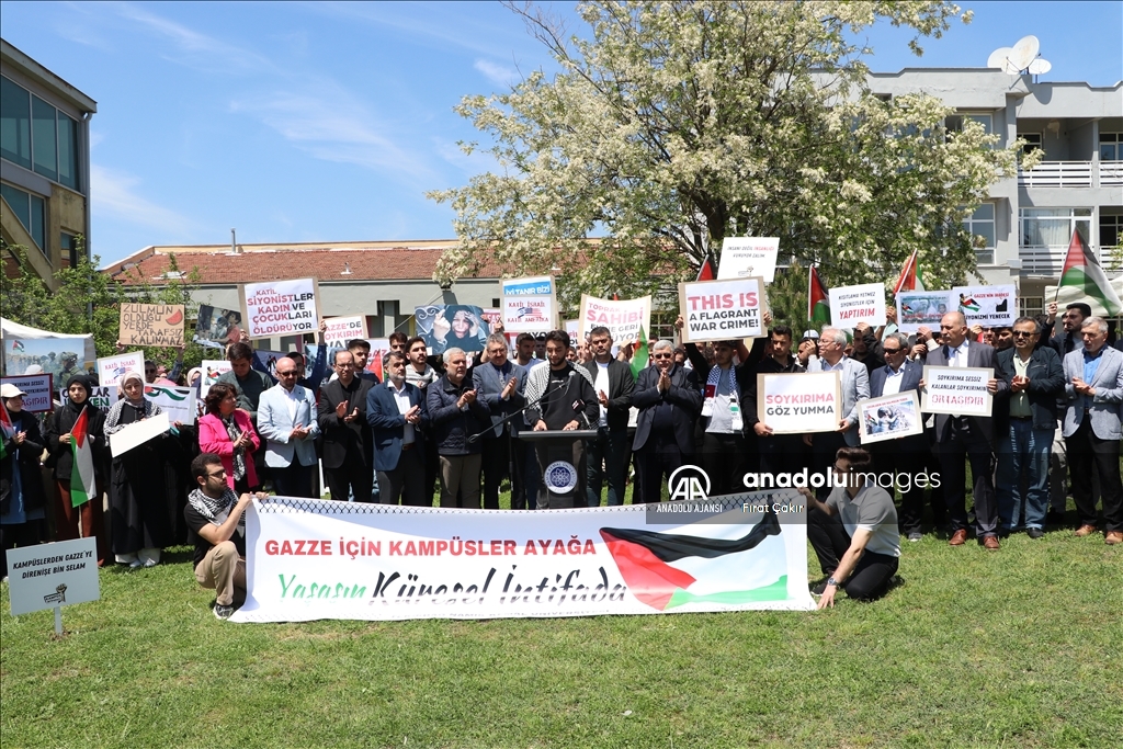 Rektör Taşdemir ise Filistin konusunda öğrencilerin her zaman yanlarında olduklarını vurgulayarak, akademik camia olarak kendilerinin de İsrail'i en şiddetli şekilde kınadıklarını söyledi.