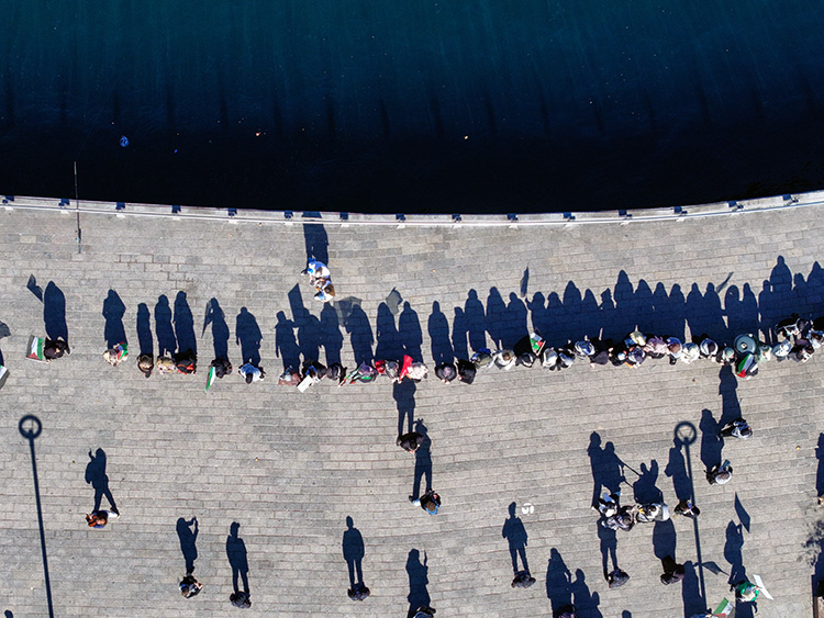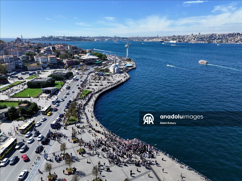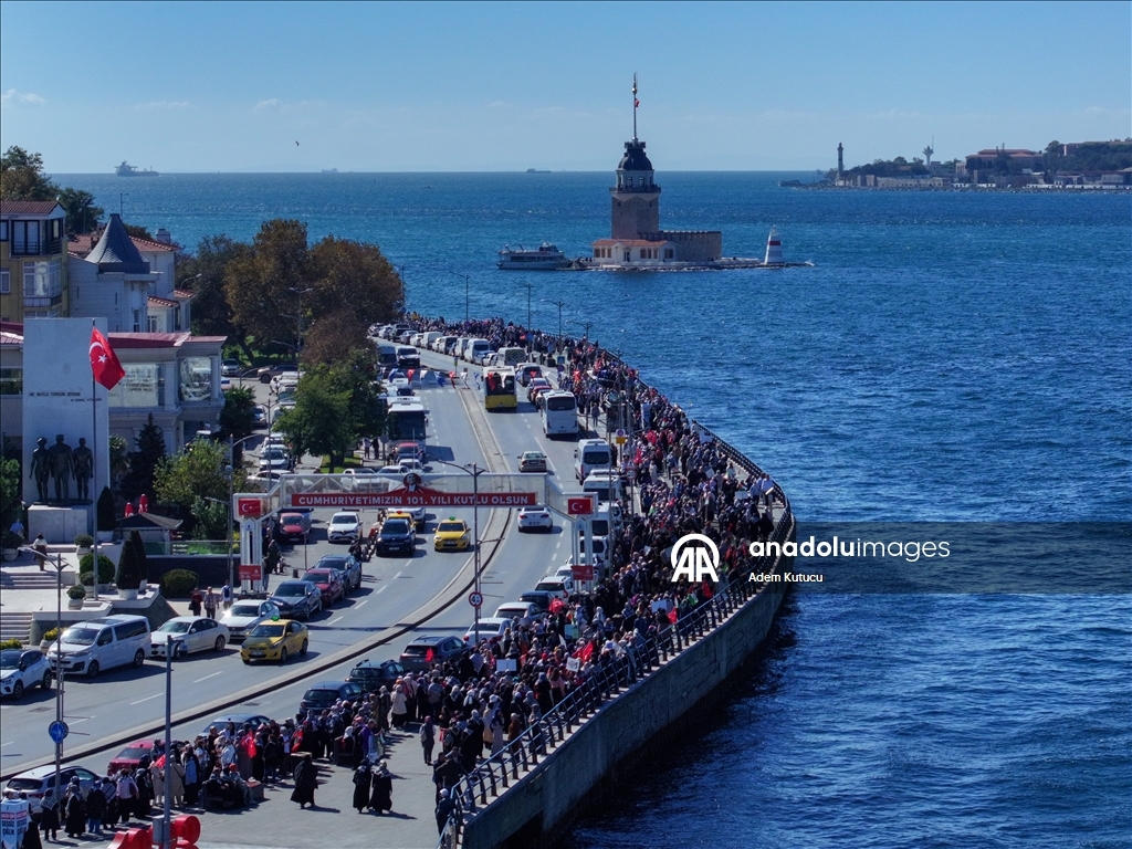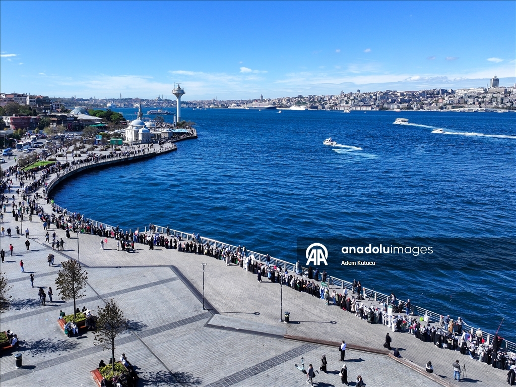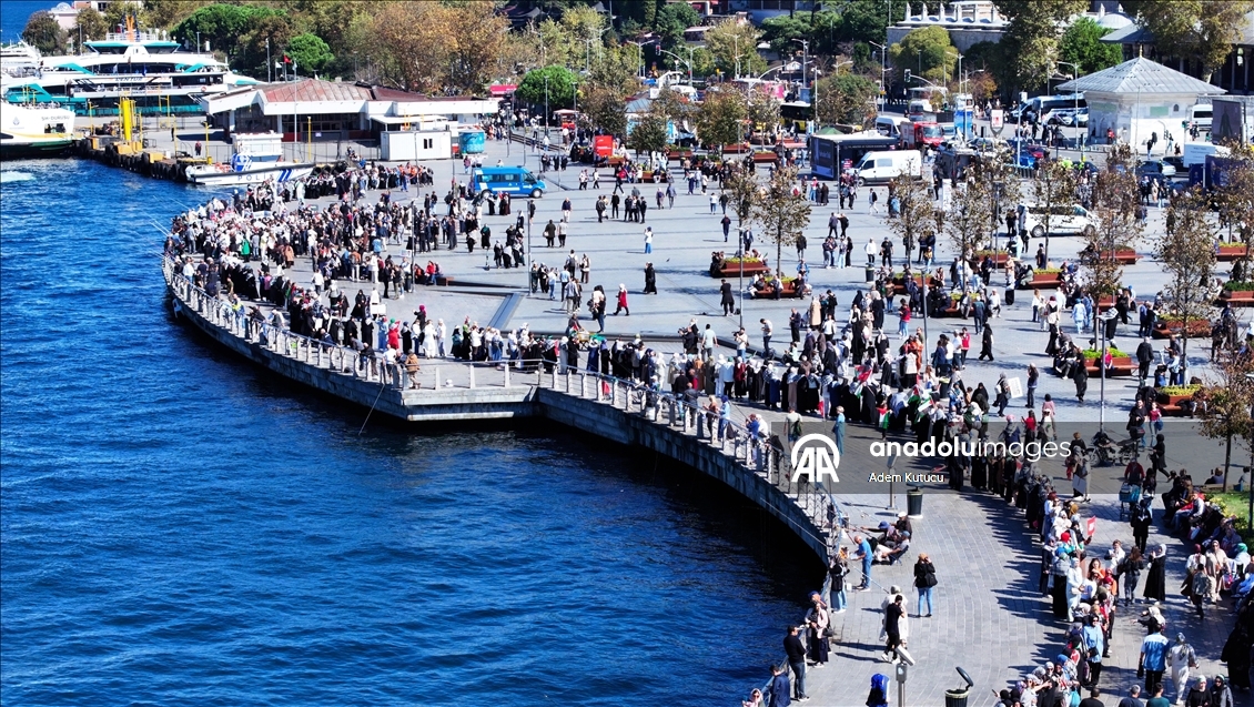 Üsküdar Sahili'nde bir araya gelen kadınlar, ellerinde Türk ve Filistin bayrakları ile çeşitli pankartlar taşıyarak Gazze'de yaşananları protesto etti. Sahil boyunca el ele tutuşan kadınlar, yüzlerce metrelik zincir oluşturdu ve İstanbul Boğazı'na karanfil bıraktı.