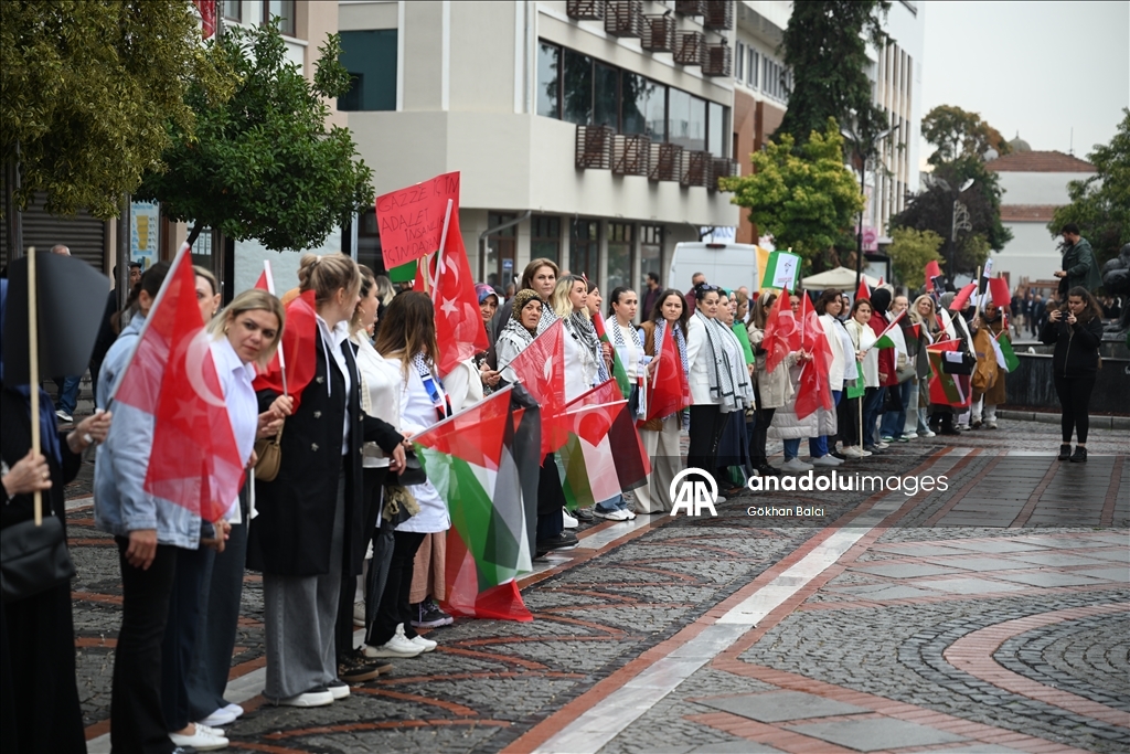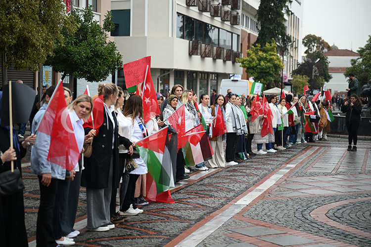 Kırklareli'nde ise Özgürlük ve Demokrasi Meydanı'nda bir araya gelen kadınlar ellerinde Filistin ve Türk Bayrakları ile el ele tutuşup "Gazze İçin Sessiz Çığlık" zinciri oluşturdu.