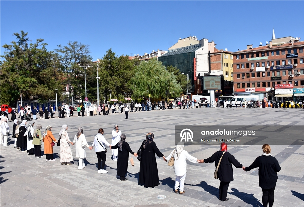 Tekirdağ'da ise Cumhuriyet Meydanı'nda toplanan kadınlar zincir oluşturup, basın açıklaması yaptı.