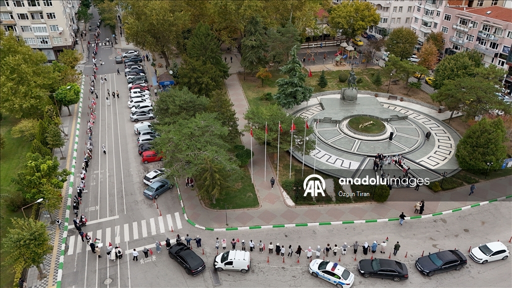 Ülke genelindeki 81 ilde kurulan bu zincirin Gazze'de evlatlarını kaybeden anne ve babaların zinciri olduğunu ifade eden Eyigün, "Bu zincir öksüz, yetim bırakılan çocukların zinciridir. Ayrıca insanlığını kaybeden herkesin zinciridir." ifadesini kullandı