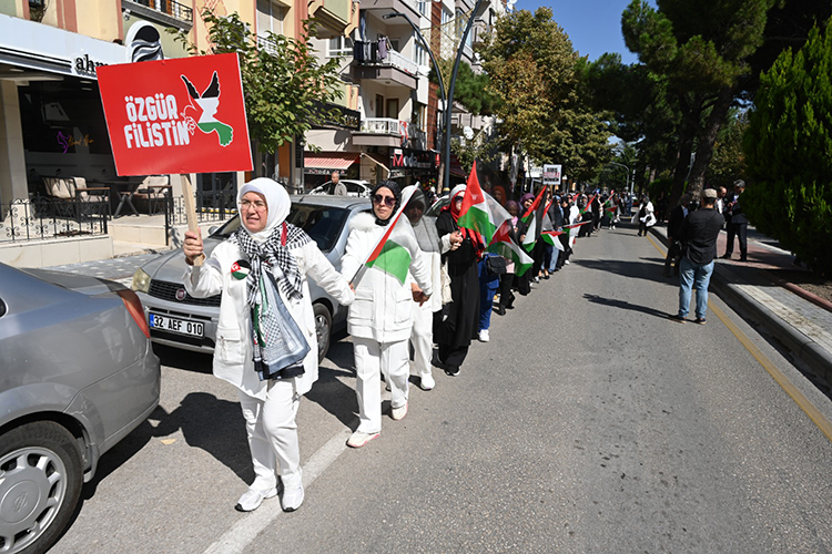 AK Parti Burdur Kadın Kolları Başkanı Cennet Özalp Tanrıöver yaptığı basın açıklamasında, kadınlar olarak Gazze'nin sessiz çığlığına ses olmak için el ele verdiklerini tüm dünyaya göstermek adına meydanlarda olduklarını söyledi.